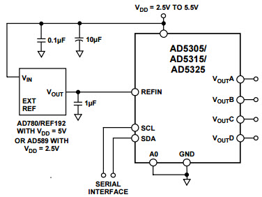 AD5315_Typical ApplicationTypical Application for AD5315 4-buffered 10-bit DAC in 10-lead MSOP |