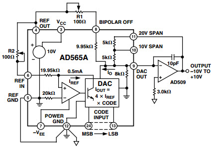 AD566A_Typical ApplicationTypical Application for AD566A High Speed 12-Bit Monolithic Digital to Analog Converter |